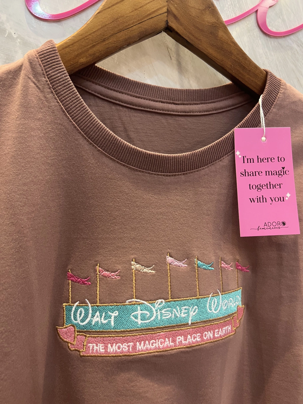 T-shirt feminina bordada confeccionada em meia malha 30/1 penteado.